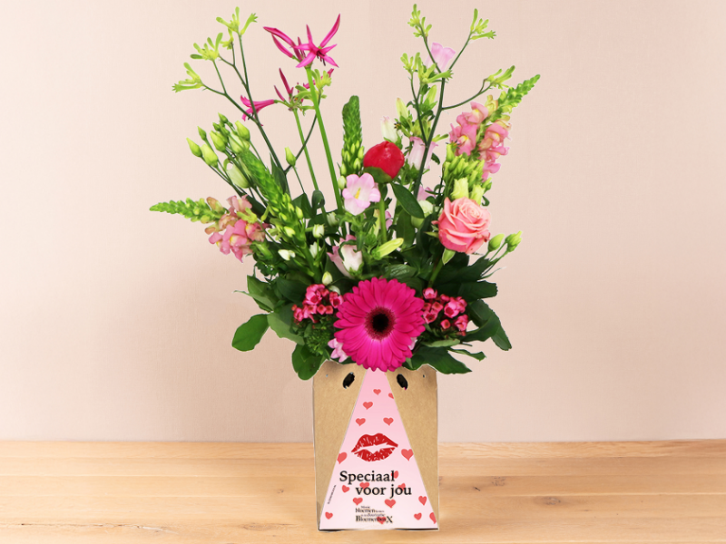 Roze plukboeket in BloemenboxX Valentijn